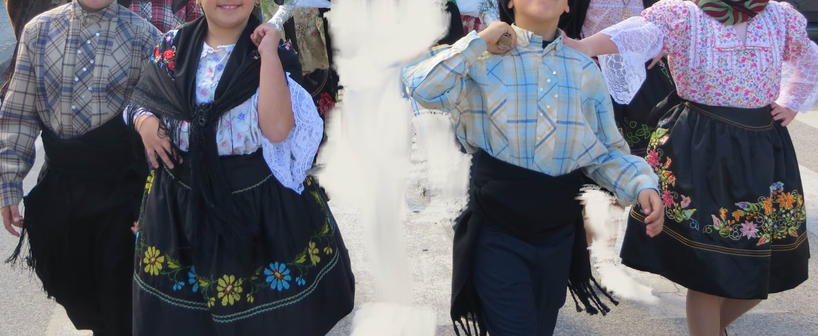 Nestes desfiles que são longos,não é possível a quem não está habituado fazê-lo, calçando Tamancos, mas há quem o faça, daí que nas fotos onde se vêem o calçado, as Senhoras vão de Chinelos e os Homens de Sapatos ou até de Sapatilhas, mas no Traje Tradicional é o Tamanco.