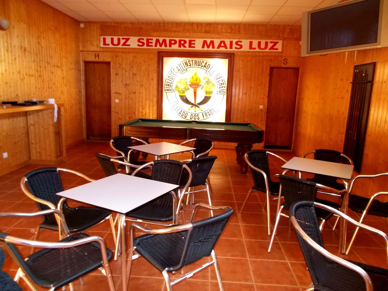 Como já aqui passei, o Bar da Biblioteca Instrução e Recreio tem Nova Imagem, Paredes ,Tetos, Pinturas etc : LUZ SEMPRE MAIS LUZ.